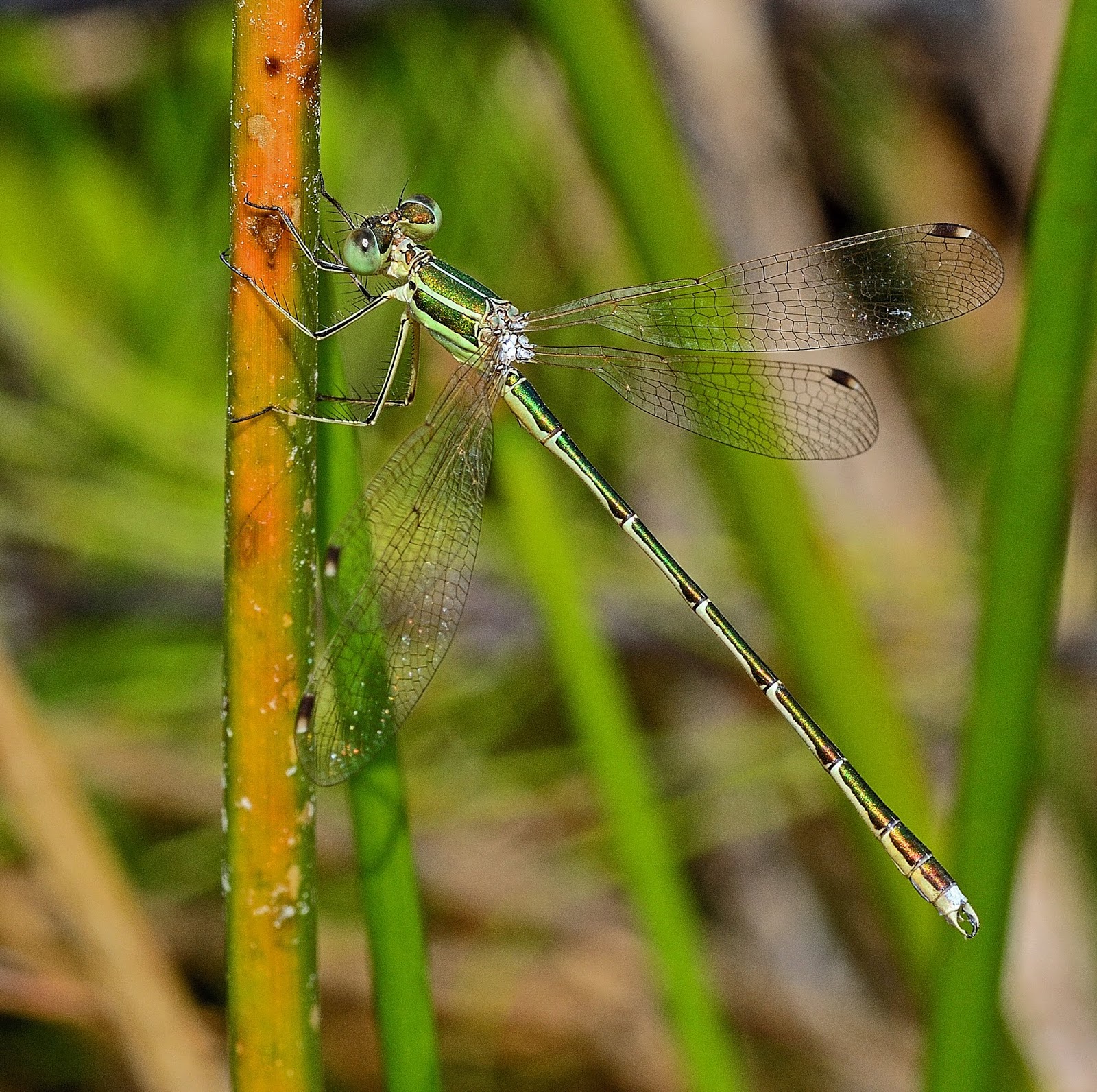 The hot and dry weather continues and it now must be almost two months since there has been any meaningful rainfall on the Isle of Wight and much of Southern England.However our colony of Southern Emerald Damselflies in Bouldnor Forest find it 'just like home' and the count today was eight males and one female at the two breeding scrapes.Both scrapes have now completely dried up.The males were seen on the vegetation in the scrapes and the lone female in the surrounding scrub